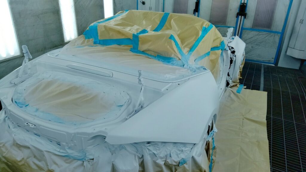 全塗装に必要なドアノブやヘッドライトなどの分解を済ませた後に下地作業をしていきます。