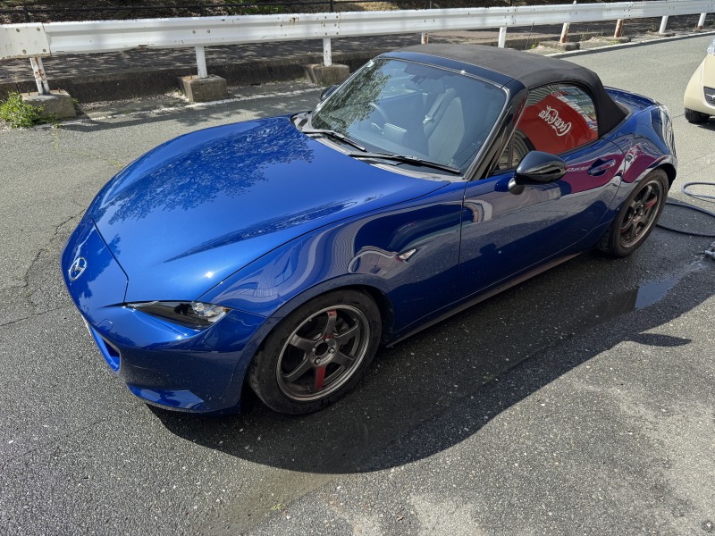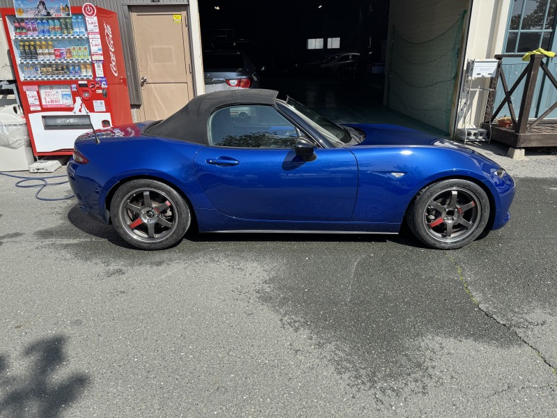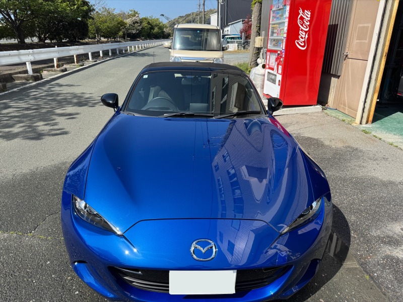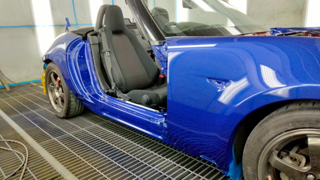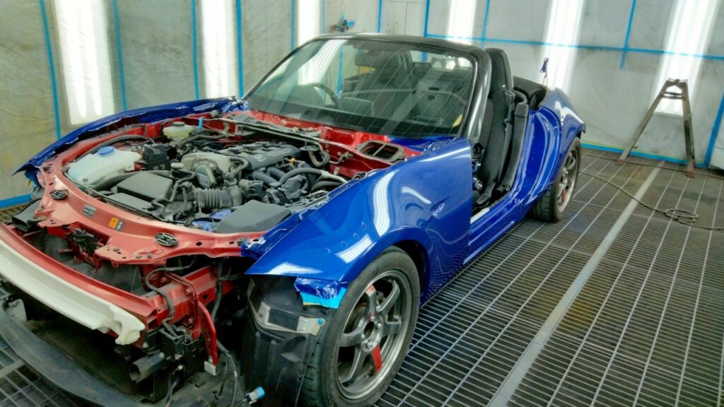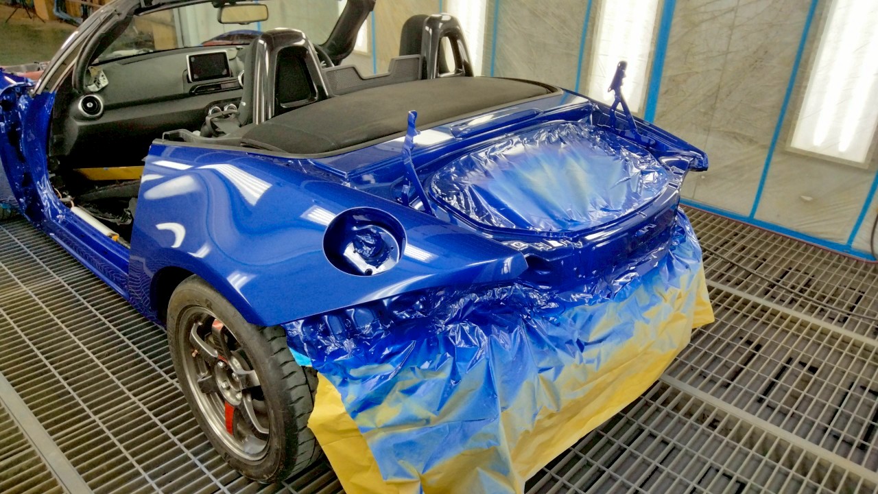 今回はロードスターをソウルレッドプレミアムメタリックからイノセントブルーマイカに全塗装をしました。