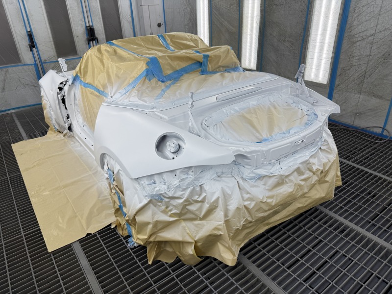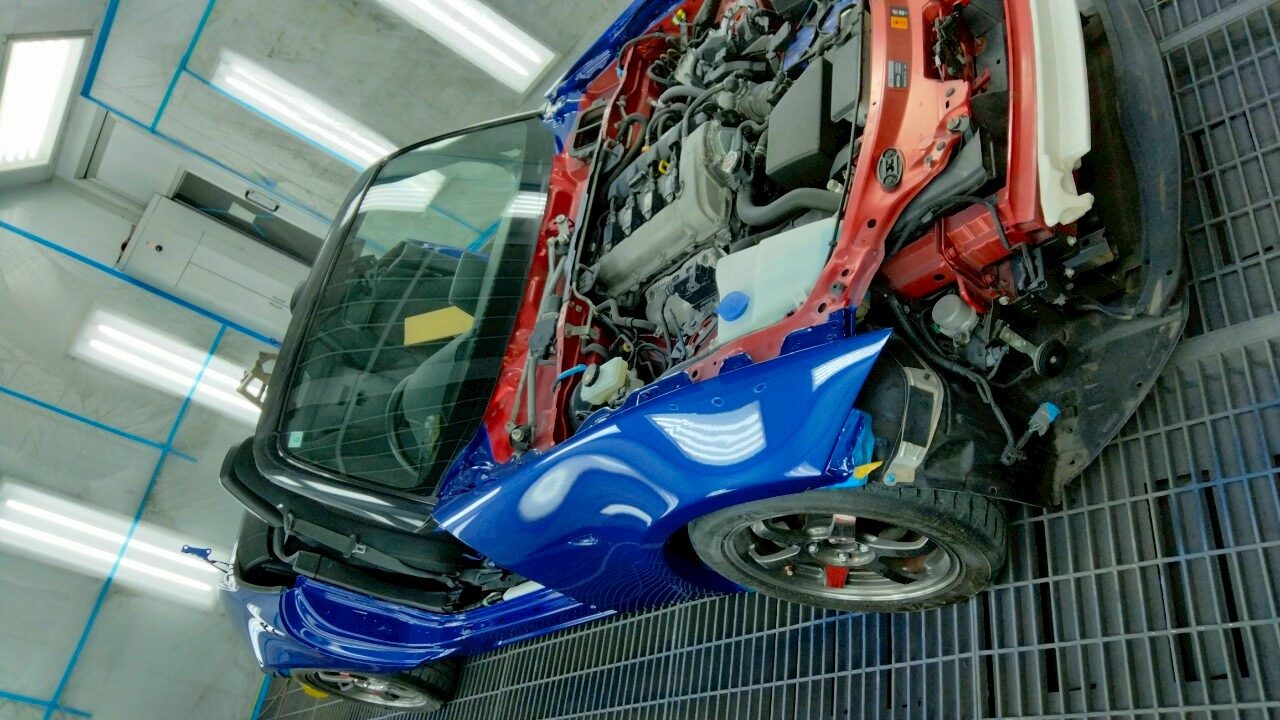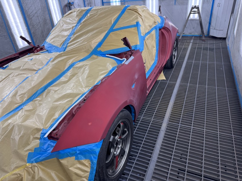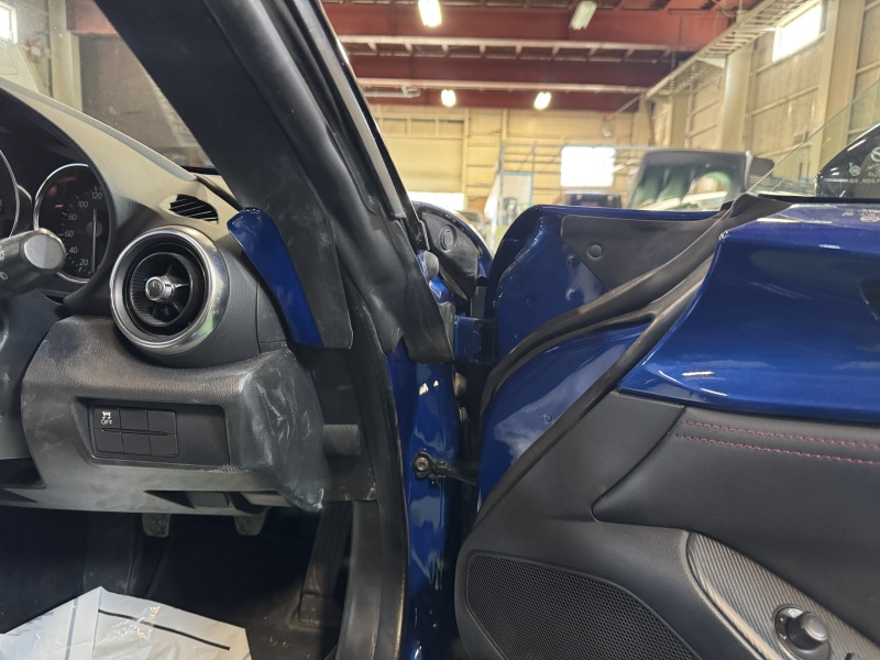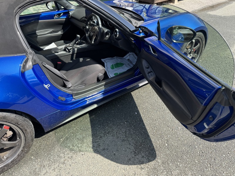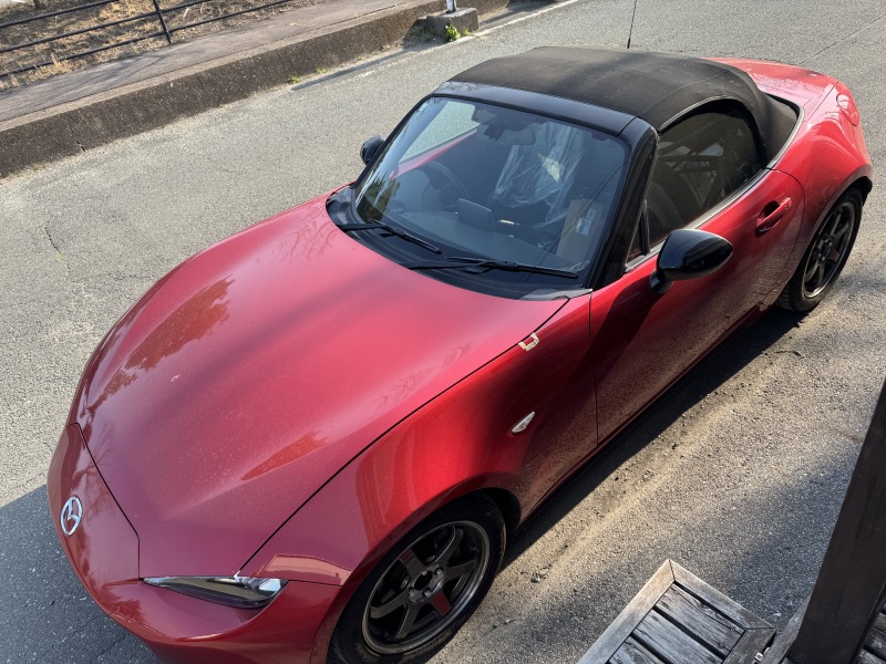 今回はロードスターをソウルレッドプレミアムメタリックからイノセントブルーマイカに全塗装をしました。