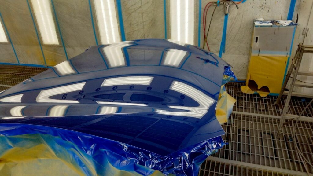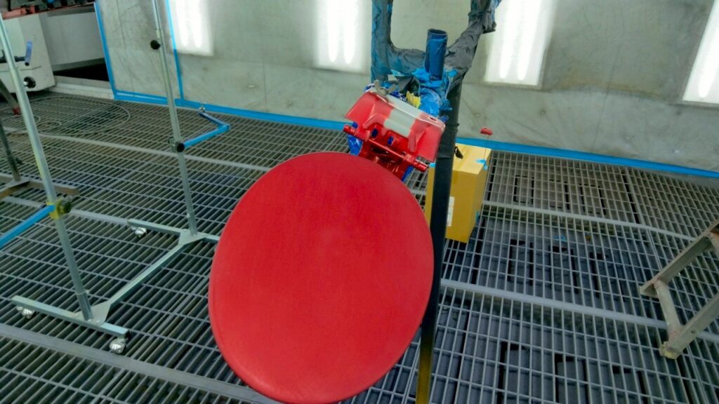 乾燥をさせて、塗装面についてしまった埃などは磨きで落としていきます。