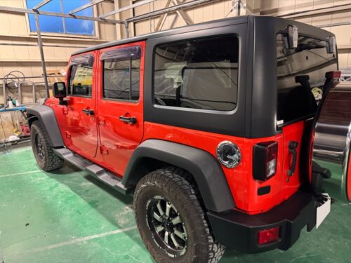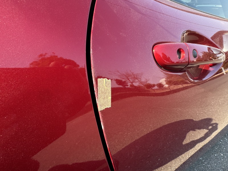 ドア内の塗装と比較をすると赤なので少し色が薄くはなっているのかなとは思いますが、大きく全体的な塗装のヤレなどは無かったです。飛石やドアのエッジの部分の塗装が剥げていたりと部分部分の補修作業は必要な状態でした。