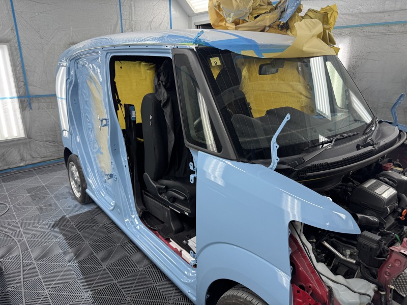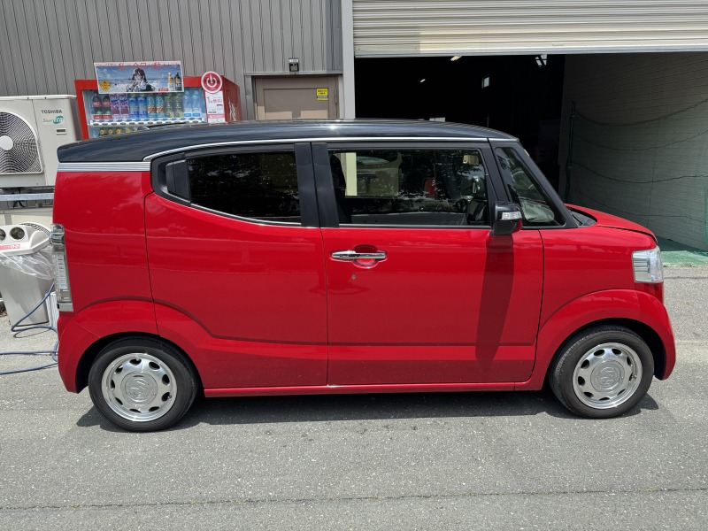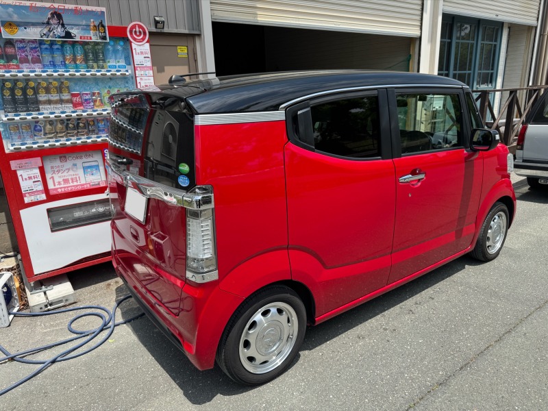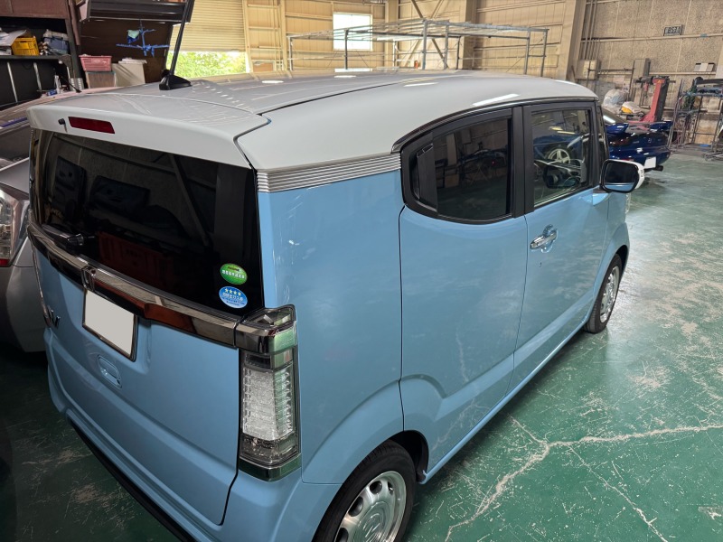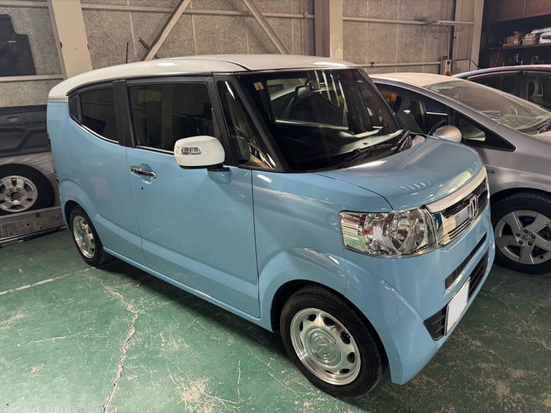 今日はホンダ N-BOX /(スラッシュ)をレッドからフィアットのブルーヴォラーレに全塗装をしましたので、作業内容を公開させていただきます。