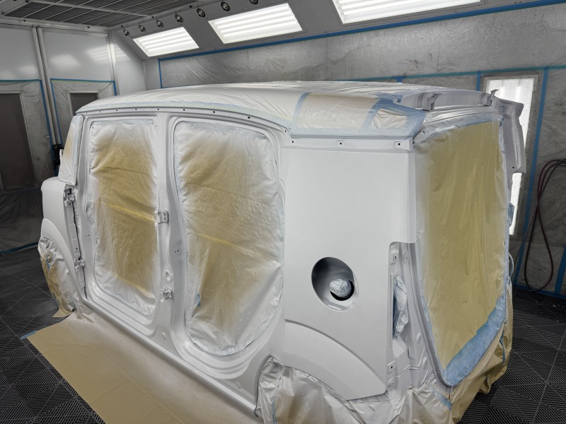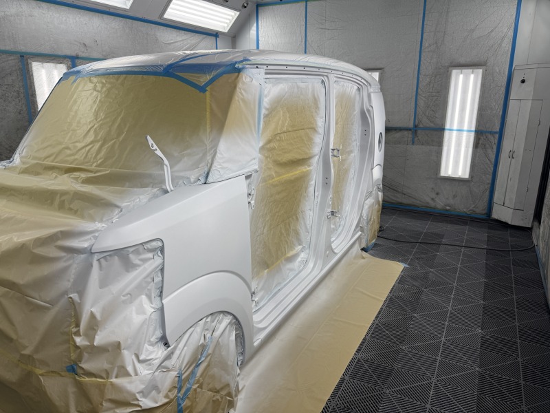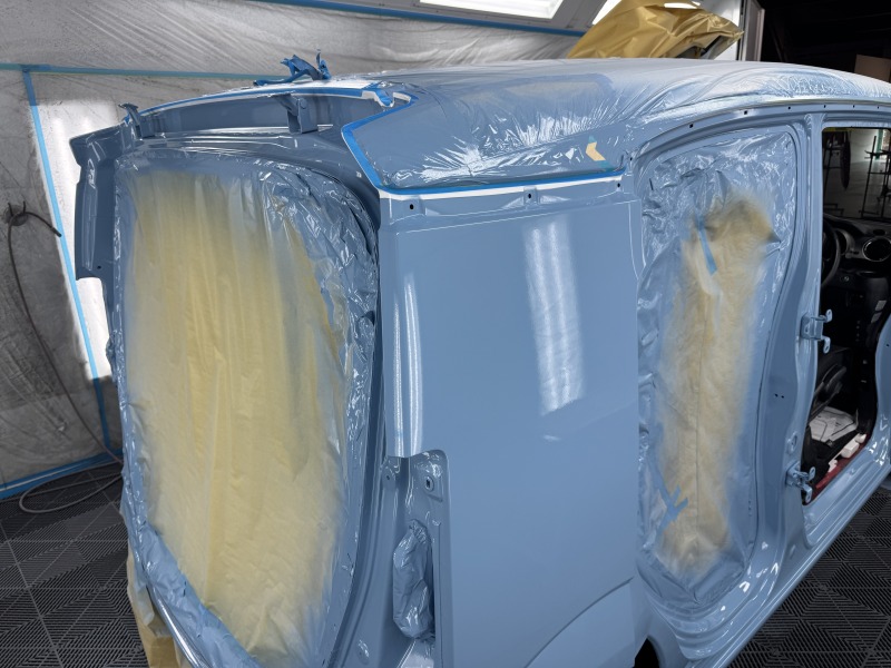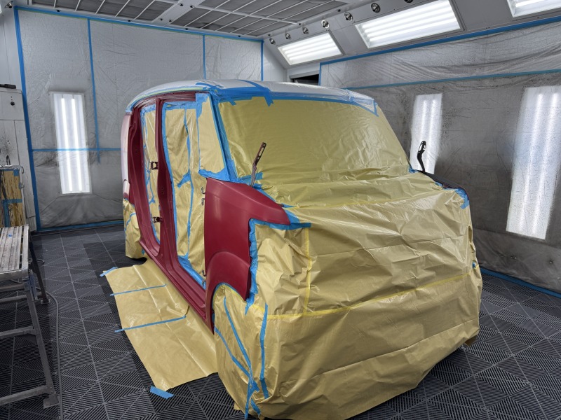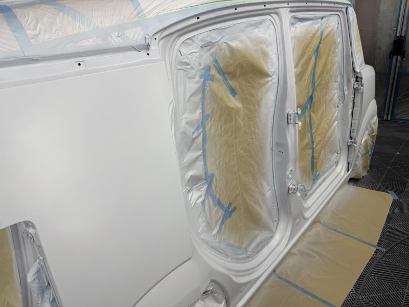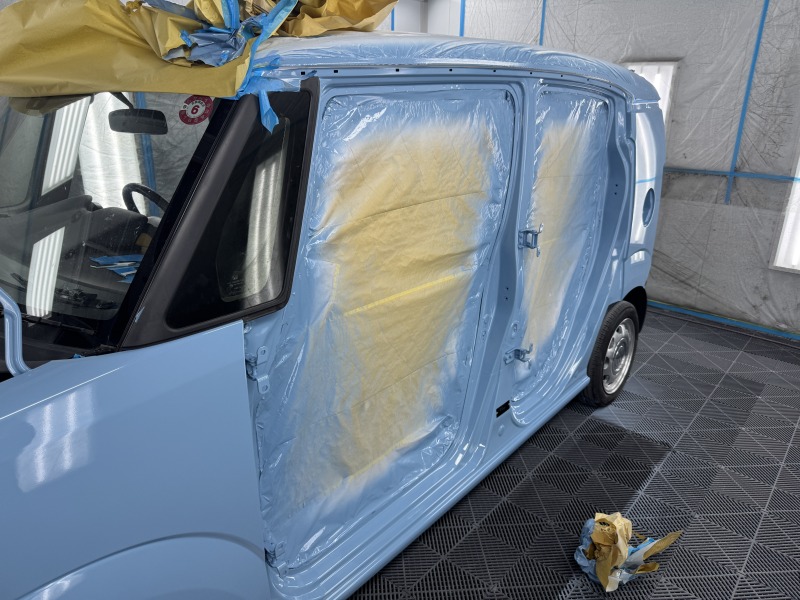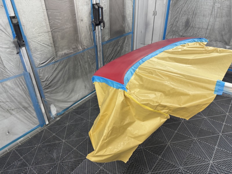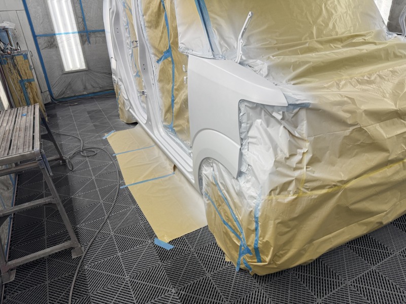 塗装が終わったら乾燥をさせ、その後すぐフェンダーやクオーター周りの下地色を塗るためにマスキングをしました。