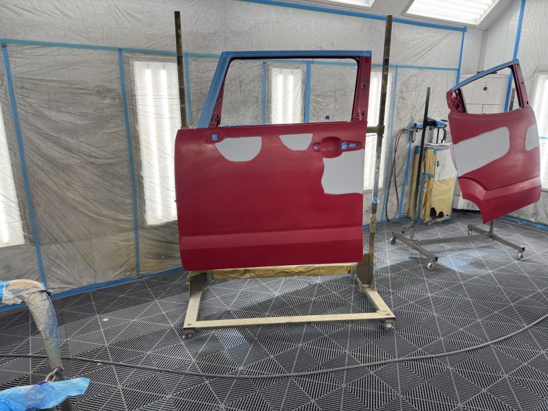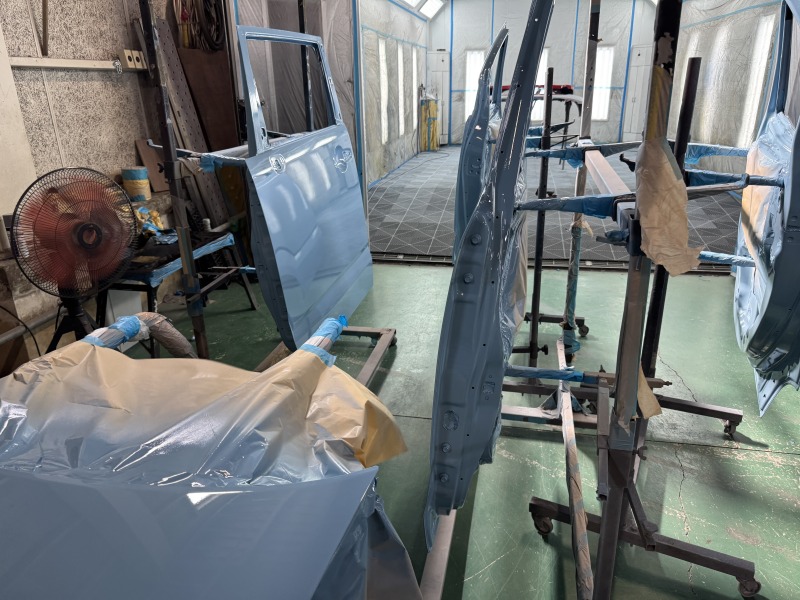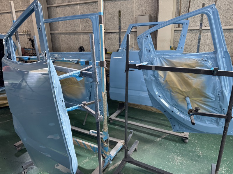 ヘッドライトやボンネットやバンパーなど全塗装で取り外しをするパーツはじめ、今回はドアの内側も塗るのでドアもフロントとリア両側とも取り外しをしました。