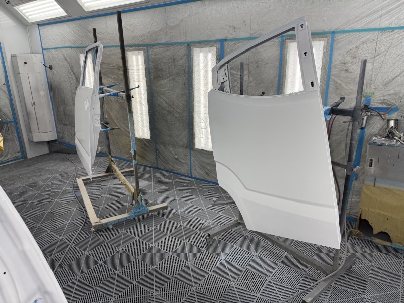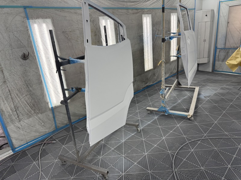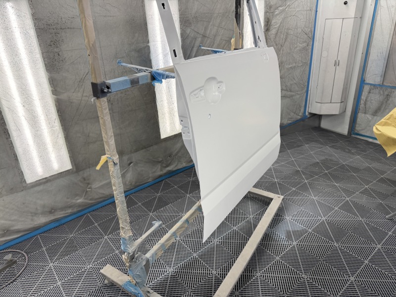 ドアは少し傷などの修正のために先に研いでから下地材であるサフェーサーを吹き付けしました。