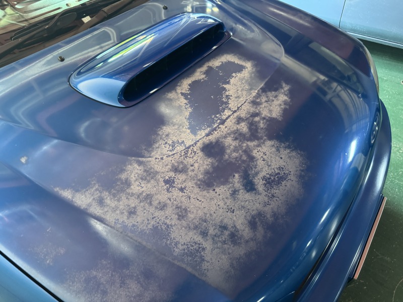 クリアーも剥がれ、塗装がやれている部分が下地まで到達している場合だと、下地の部分よりも削り切ってから塗装をすることになります。ボンネットの場合は着脱ができるので剥離をし、下地作業を行なってから塗装をすることが多いです。