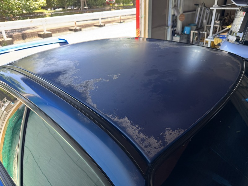 初年度登録から25年とほぼ四半世紀を走り抜いたお車の状態はボンネットとルーフの塗装がやれてきており、サイドもいくつか補修が必要な傷が見受けられました。