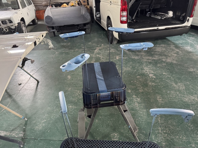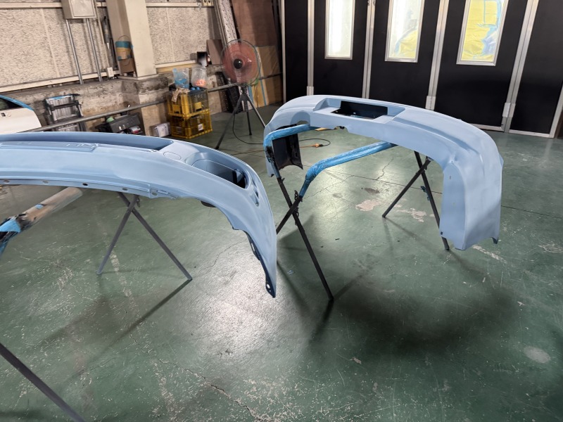 本体を塗り終えたら、次は部品を塗装します。本体同様に下地処理や足つけを行いました。