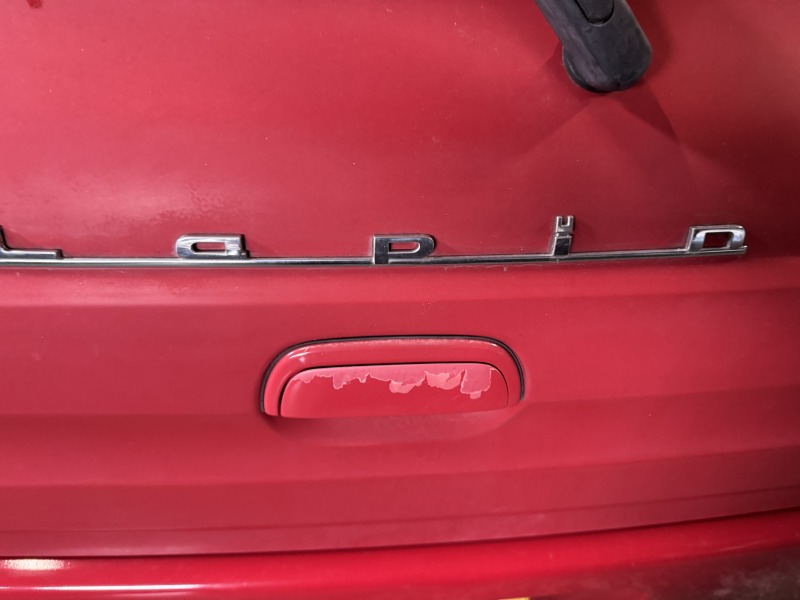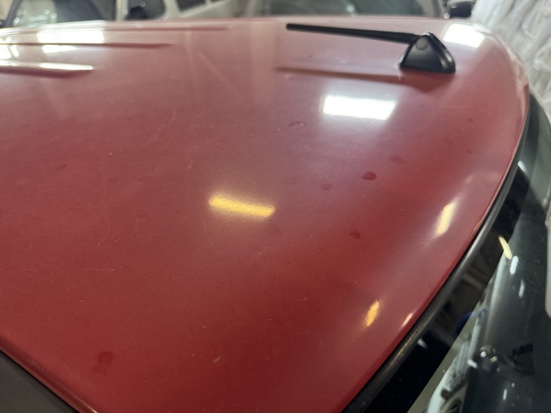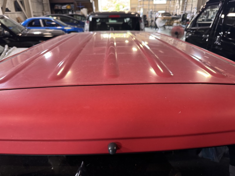 ドアの上側は紫外線によってクリアーが剥がれてきてはいますが、艶のある赤がところどころ残っていてルーフは艶がないのが写真でもわかると思います。