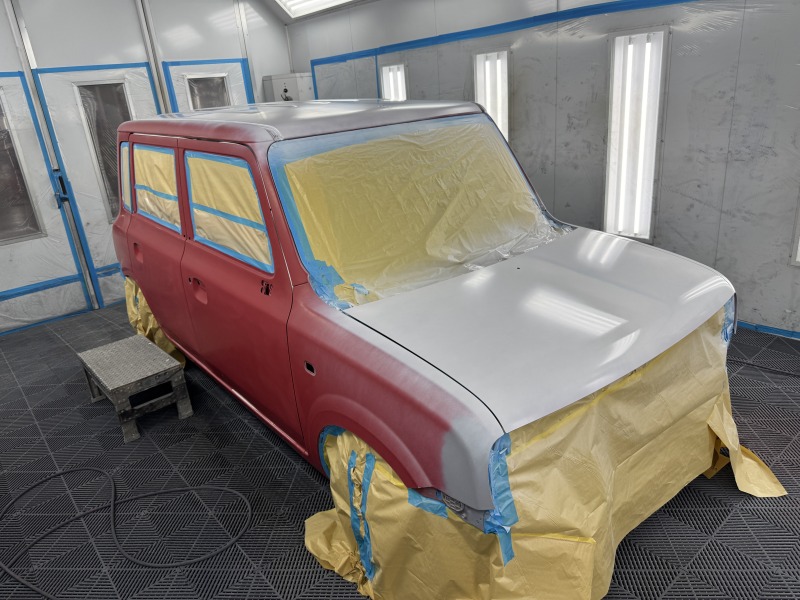 今回はドアの内側を塗らないパックでしたので、ドアやボンネットはつけたまま塗装をしました。