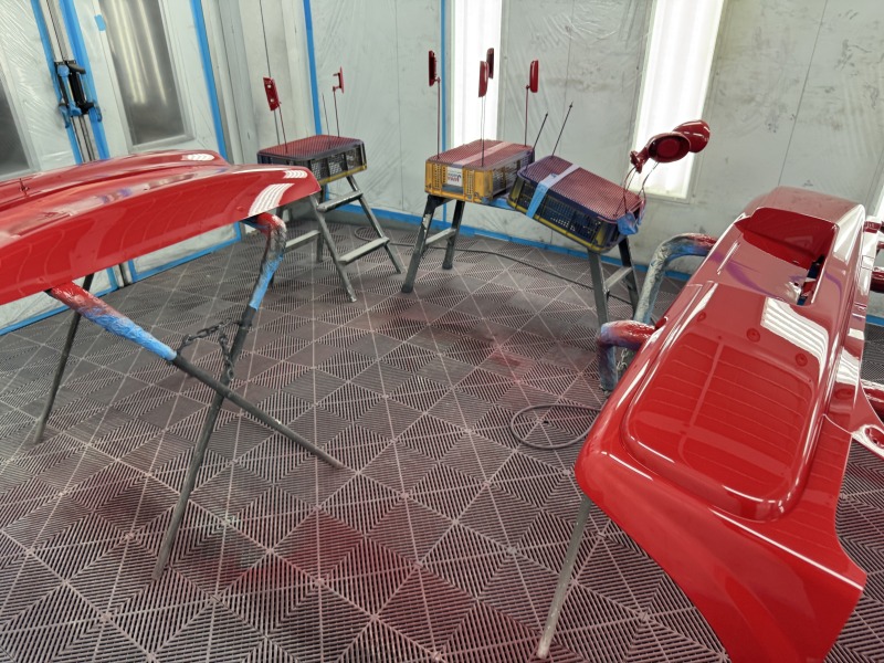 ブースの中でしっかり乾燥をさせてから分解をしたパーツを取り付けていきます。