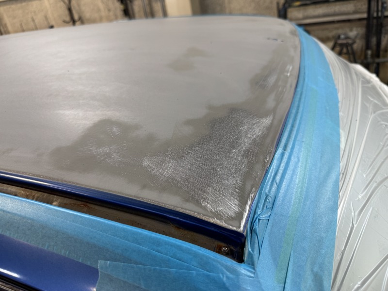 まずは全体的に塗装がやれていたルーフの部分の下地処理から始めました。
