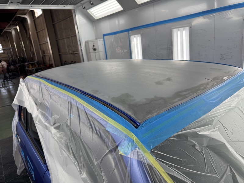 ルーフは分解ができず剥離ができない為、ペーパーで塗装が悪くなった部分を徹底的に研ぐ必要があります。