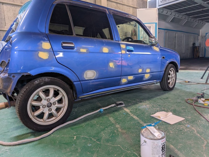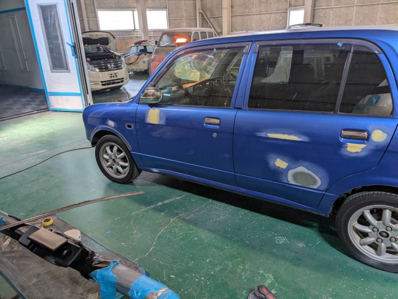 今回はダイハツ ミラジーノの同色全塗装をしましたので作業内容を公開させていただきます。