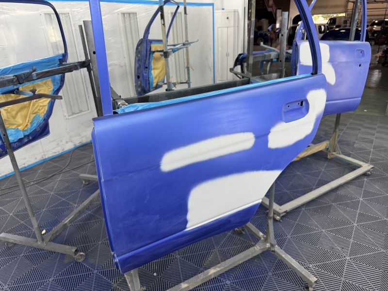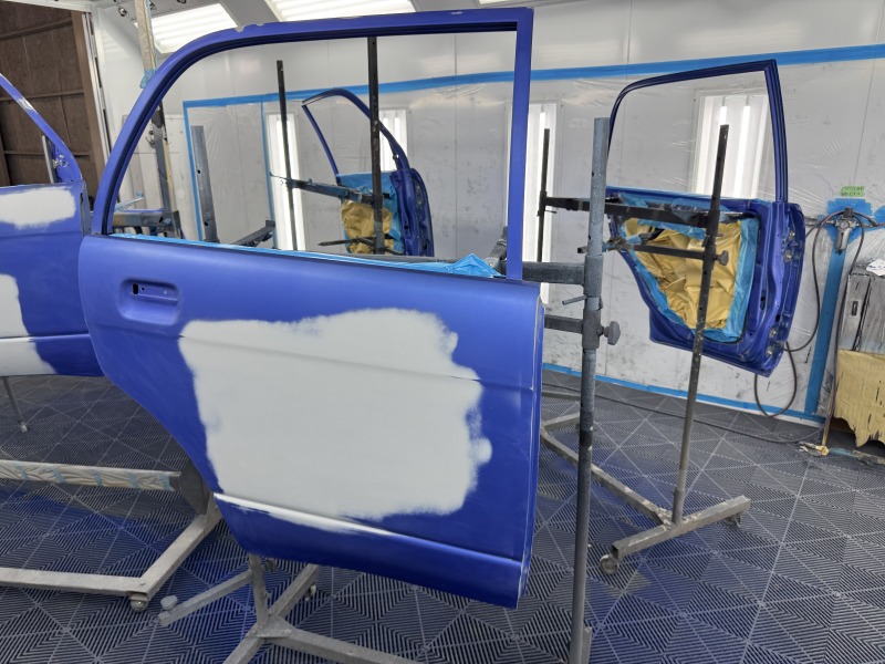ルーフの処理を終えたら、ドアやフェンダーなどの下地処理をしました。