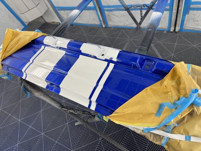 塗装をしました。細いラインの部分のマスキングをゆっくり剥がした後の写真になります。
