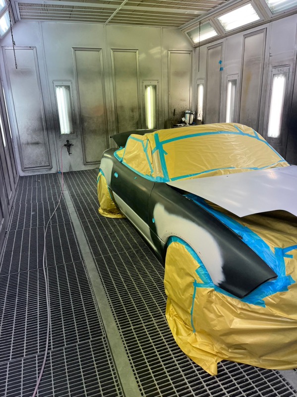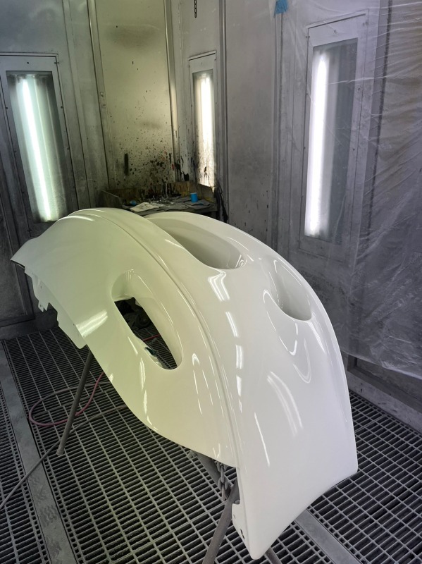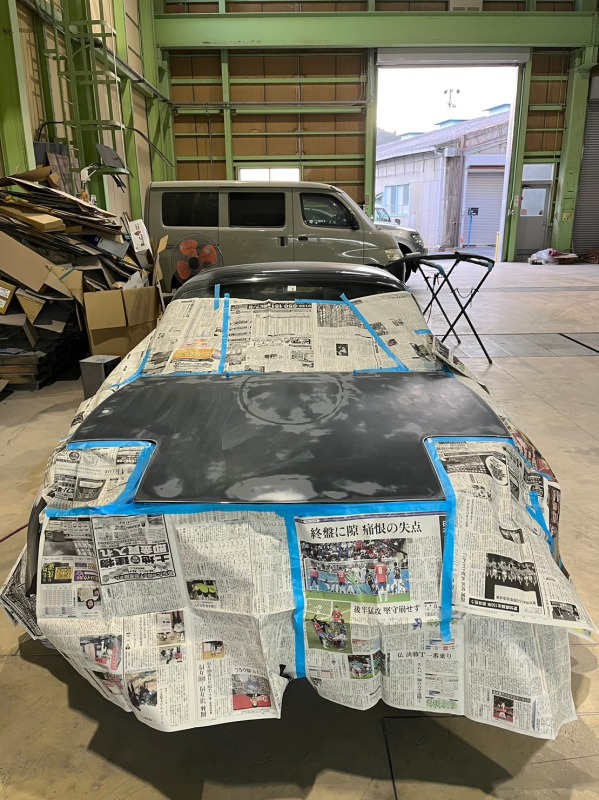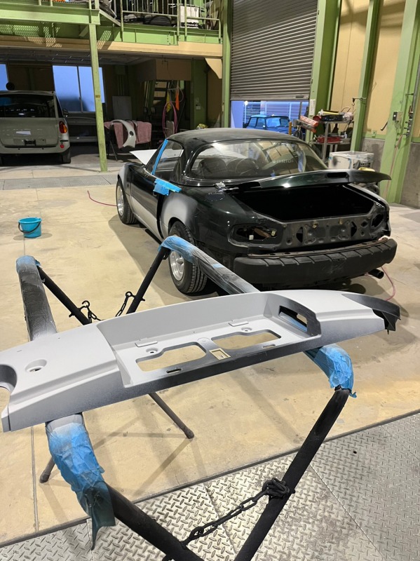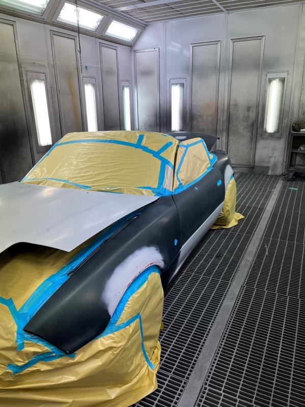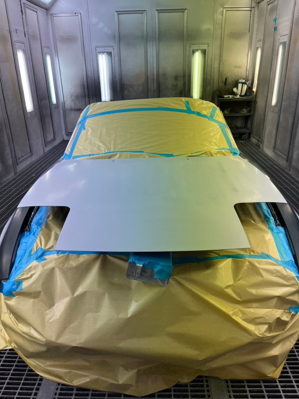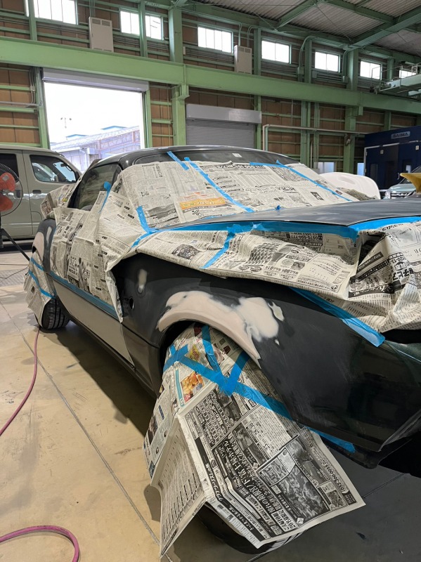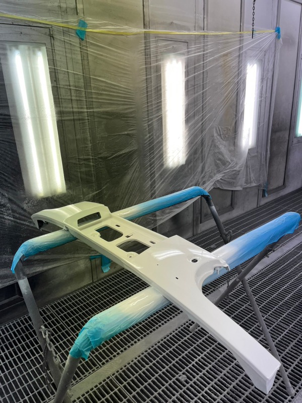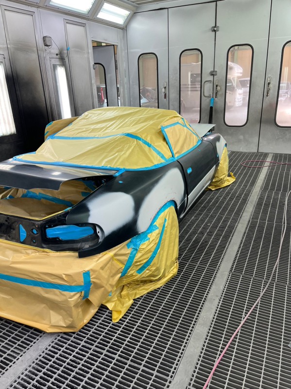 下地作業が終わったらブースの中へ移動をさせて塗装の準備をしていきます。