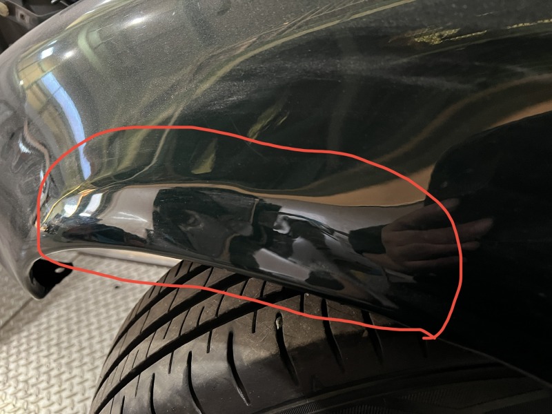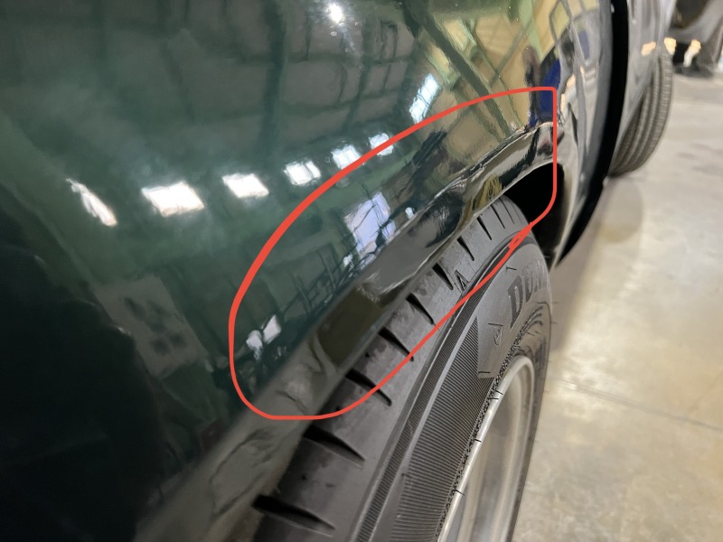 入庫をした時の状態は30年ほどの前の車ということもあった、クオーターの部分が凹みや歪みなど他にも下地処理が必要な場所が数箇所ありました。全塗装は白への色変え塗装の予定で交換用のパーツも白色でしたが、交換用のパーツの状態なども考慮して全てサフェーサーで下地処理をすることをお勧めしました。