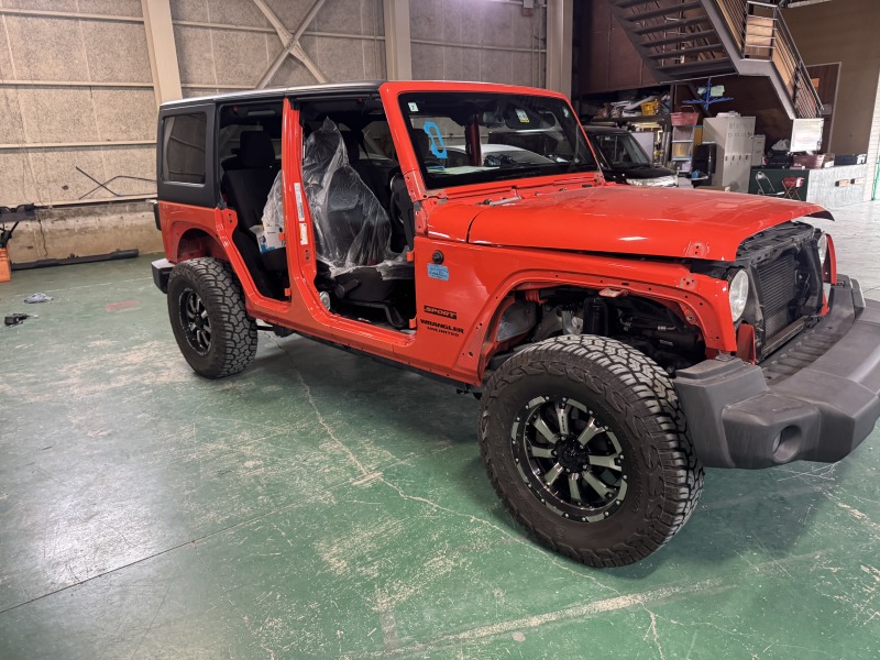 ラングラーは全ての部品をネジだけで分解が可能なのがとても板金塗装屋さんに優しくて良いですね。